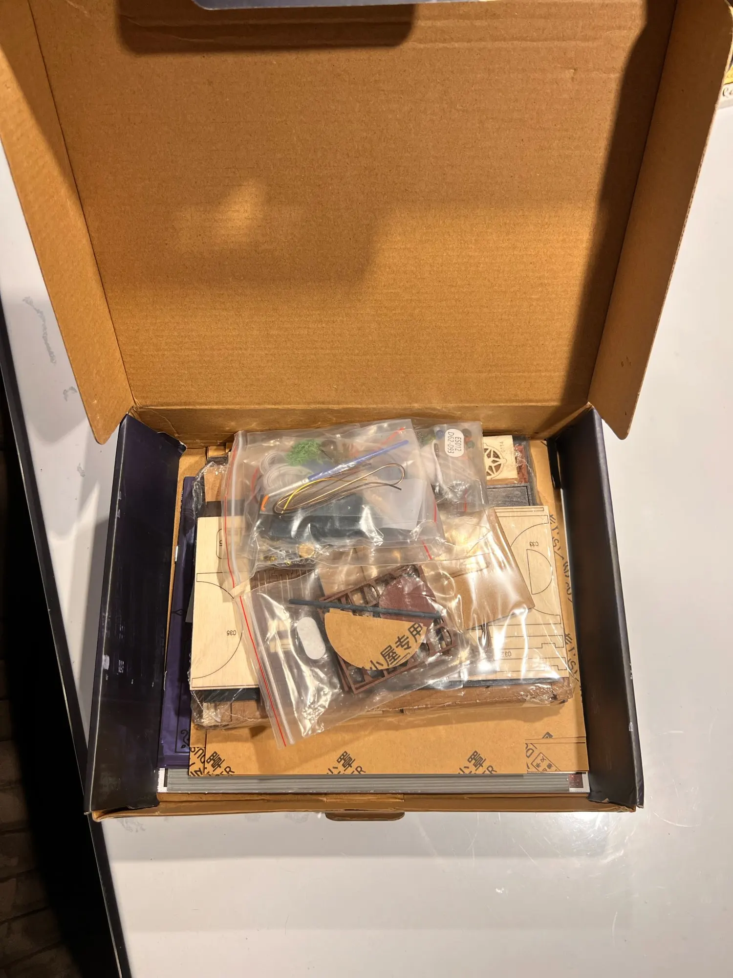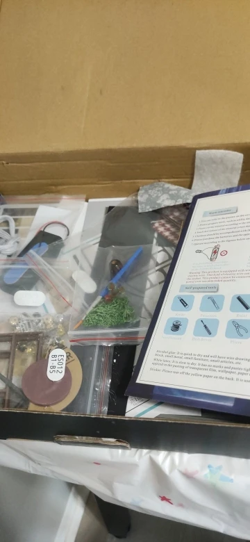 Everything arrived in perfect condition, now we need to be patient for the assembly. Does not include glue or lights batteries